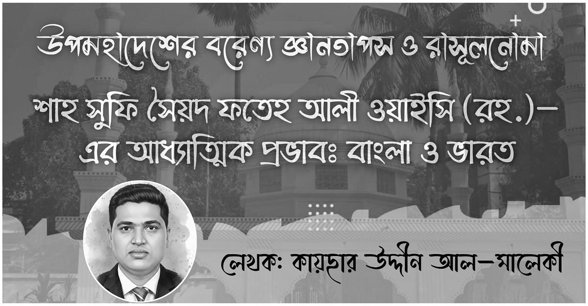 মানবসভ্যতার ইতিহাসে তাসাউফ এমন এক শান্তির পথ, যা মানুষের অন্তরকে পরিশুদ্ধ করে; আল্লাহর সান্নিধ্যে পৌঁছে দেয়। নবী-রাসূলদের ধারাবাহিকতায় এই আধ্যাত্মিক জাগরণের আলো ছড়িয়ে দিয়েছেন, অগণিত আউলিয়ায়ে কেরাম। তাঁরা মানুষকে পরিচয় করিয়ে দিতে চেয়েছেন, প্রকৃত মালিক-আল্লাহ তাআলার সঙ্গে, যিনি পরম সত্য, সর্বশক্তিমান ও সর্বদাতা। আর হযরত মুহাম্মাদে মুস্তফা আহমদে মুজতাবা সাল্লাল্লাহু আলাইহি ওয়া সাল্লাম-আল্লাহর প্রেরিত সর্বশেষ, সর্বশ্রেষ্ঠ রাসূল এবং রাহমাতুল্লিল আলামিন। ইসলামের এই নূরানি পথকে যুগান্তরে সত্য ও সৌন্দর্যের বাণী হিসেবে মানুষের অন্তরে প্রতিষ্ঠিত করেছেন নানা সাধক। তাঁদেরই একজন ছিলেন, ভারতীয় উপমহাদেশের প্রথম বাঙালি ফারসি কবি, প্রখ্যাত আলেমেদ্বীন, রাজনীতিবিদ, আইনজ্ঞ এবং অসামান্য আধ্যাত্মিক ব্যক্তিত্ব- হযরতুল আল্লামা শাহ সুফি সৈয়দ ফতেহ আলী ওয়াইসি (রহ.)।