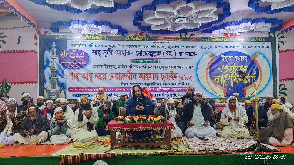 গতকাল ২৮ ডিসেম্বর রোজ রবিবার পটুয়াখালী জেলার মির্জাগঞ্জ উপজেলাধীন মহিষকাটা খানকায়ে ছালেহীয়া দীনিয়া মাদ্রাসা কমপ্লেক্স ময়দানে ঈছালে ছাওয়াব মাহফিলে প্রধান অতিথির আলোচনায় হযরত পীর ছাহেব কেবলা একথা বলেন।