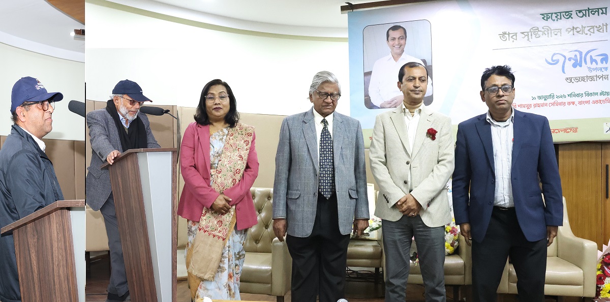 স্বতন্ত্র ধারার কবি, উত্তর-উপনিবেশী তাত্ত্বিক ও চিন্তক ফয়েজ আলমের ৫৮তম জন্মদিন উপলক্ষে শুভেচ্ছাজ্ঞাপন অনুষ্ঠান ১০ জানুয়ারি’২৬ শনিবার বাংলা একাডেমির কবি শামসুর রাহমান সেমিনার কক্ষে অনুষ্ঠিত হলো। ‘ফয়েজ আলম: তাঁর সৃষ্টিশীল পথরেখা’ শিরোনামে অনুষ্ঠিত উক্ত শুভেচ্ছাজ্ঞাপন ও আলোচনা সভায় অতিথি হিসেবে উপস্থিত ছিলেন বাংলা একাডেমির সভাপতি বিশিষ্ট শিক্ষাবিদ অধ্যাপক আবুল কাসেম ফজলুল হক ও জনতা ব্যাংকের চেয়ারম্যান মুহঃ ফজলুর রহমান সিএসপি। শিল্প-সাহিত্য সংশ্লিষ্ট কয়েকটি সংগঠন: ঢাকা রিপোর্ট ২৪ ডটকম, বাঙালমেল, সরলরেখা, বায়োগ্রাফি ফাউন্ডেশন, বুকওয়ার্ম সোসাইটি ও কাব্যস্বর সম্মিলিতভাবে এ অনুষ্ঠানের আয়োজন করেছে। অনুষ্ঠানে অন্যান্যের মধ্যে বক্তব্য রাখেন লেখক-গবেষক আবু সাঈদ তুলু, কবি ও কথাশিল্পী জোহরা পারুল, কবি খলিল মজিদ, জহির হাসান, রাজু আহমেদ মামুন, মামুন খান, ইমরান মাহফুজ, মামুন আজাদ, কবি ও লিটলম্যাগ সম্পাদক রিসি দলাই, শওকত হোসেন, ইকতিজা আহসান প্রমুখ। এছাড়া ফয়েজ আলমের সহপাঠী, সহকর্মী ও শুভানুধ্যায়ীবৃন্দ অনুষ্ঠানে উপস্থিত হয়ে শুভেচ্ছা জ্ঞাপন করেন। উক্ত অনুষ্ঠানে কবি ও চিন্তক ফয়েজ আলমের গুণমুগ্ধ পাঠকবৃন্দসহ প্রায় দেড়শতাধিক সাহিত্যপ্রেমী মানুষ উপস্থিত ছিলেন। অনুষ্ঠানে কবির জীবন ও সাহিত্যকর্মের উপর ডক্যুমেন্টারি প্রদর্শন করা হয়, কবির কবিতা থেকে পাঠ ও আবৃত্তি এবং কবিতার দৃশ্যায়ন প্রর্দশিত হয়। পরে কেক কেটে কবির জন্মদিন উদযাপন করা হয়।