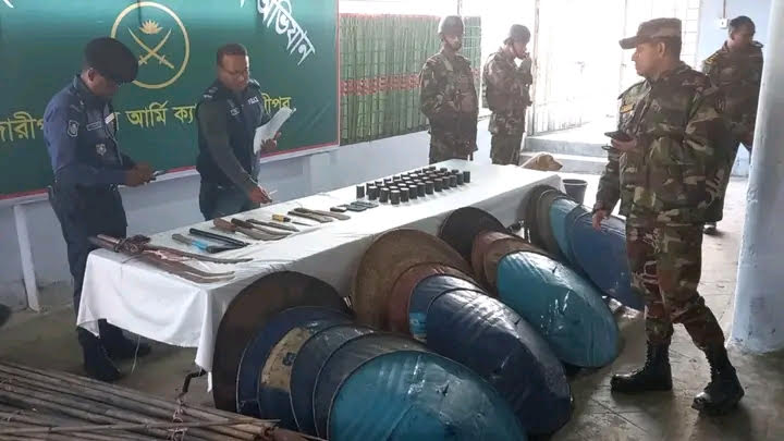 মাদারীপুরে অভিযান চালিয়ে ককটেল, রামদা, চাপাতিসহ বিপুল পরিমান দেশিয় অস্ত্র উদ্ধার করেছে সেনাবাহিনী