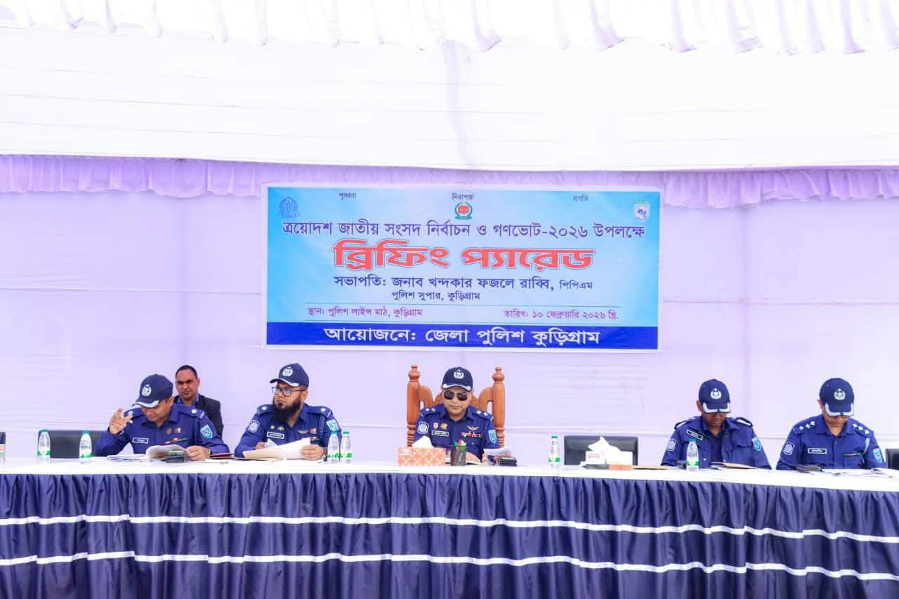 ব্রিফিং প্যারেডে পুলিশ সুপার আসন্ন ত্রয়োদশ জাতীয় সংসদ নির্বাচন ও গণভোট-২০২৬ উপলক্ষ্যে মহামান্য নির্বাচন কমিশন কর্তৃক সকল আদেশ নিষেধ যথাযথভাবে প্রতিপালনের কথা দ্ব্যর্থহীন ভাষায় উল্লেখ করেন। পুলিশ সুপার বলেন, পূর্বের থেকে আরো বেগবান হয়ে সম্পূর্ণ সততা, সাহস, নিরপেক্ষতা, নিষ্ঠা ও আইনানুগভাবে দায়িত্ব পালন করতে হবে। অবাধ, সুষ্ঠু, নিরপেক্ষ নির্বাচনের পথে বাধা হয়, এমন কাউকেই কোনভাবেই ছাড় দেয়া হবেনা। এছাড়াও তিনি এও বলেন, নির্বাচন উপলক্ষ্যে কুড়িগ্রাম জেলায় পর্যাপ্ত পরিমাণে নিরাপত্তা ব্যাবস্থা গ্রহণ করা হয়েছে। অব্যাহত আছে নিরবিচ্ছিন্ন প্যাট্রলিং ও পুলিশিং কার্যক্রম।